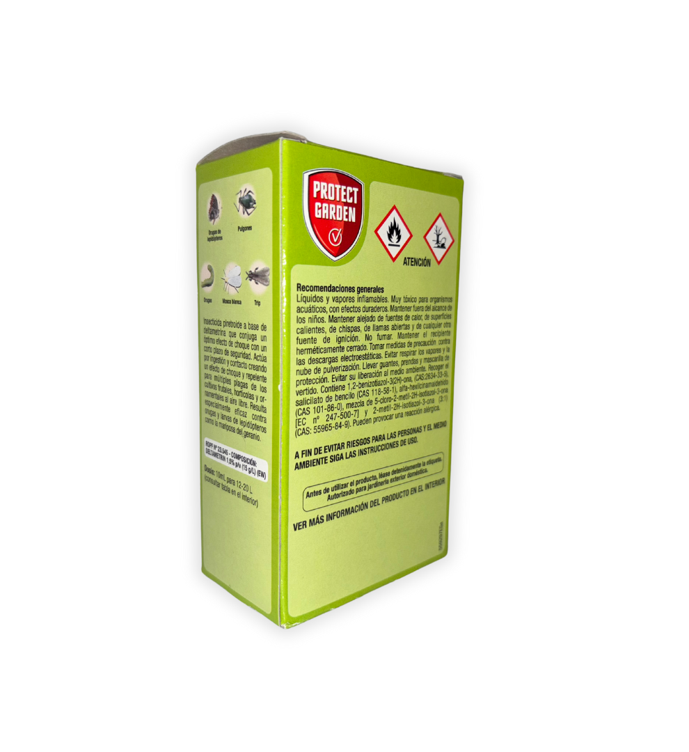 Formulado a base de deltametrina al 1,5% p/v, un piretroide de última generación, este insecticida ofrece una acción polivalente contra una amplia gama de insectos perjudiciales. Su eficacia ha sido comprobada en diversos cultivos, incluyendo ornamentales, frutales y hortícolas. El producto es especialmente eficaz contra:
