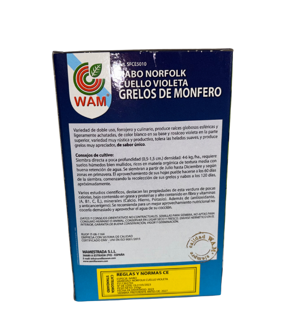 Las semillas WAM garantizan una alta germinación y están seleccionadas para ofrecer plantas vigorosas, de crecimiento uniforme y resistente a bajas temperaturas. Perfectas para huertos urbanos, parcelas o cultivo en jardineras profundas.
